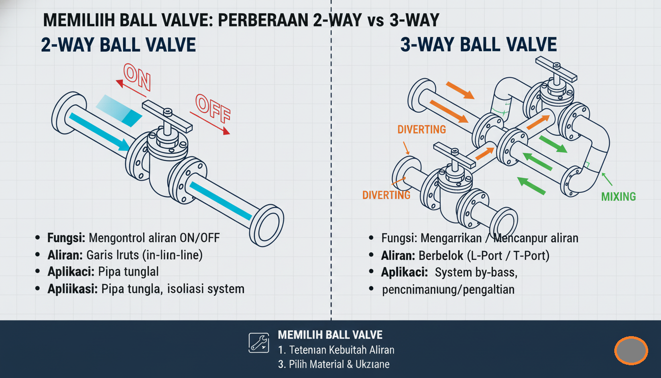 Namun, di tahap perencanaan, sering muncul pertanyaan mendasar: Kapan Anda harus menggunakan Ball Valve 2-Way yang sederhana, dan kapan Anda benar-benar memerlukan Ball Valve 3-Way yang lebih kompleks?