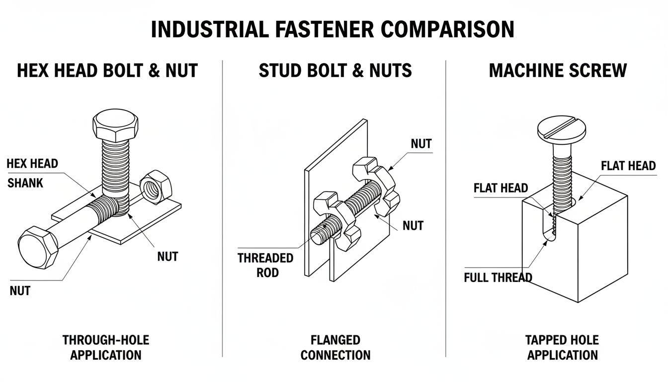 Meskipun sama-sama berfungsi sebagai pengikat (fastener), penggunaannya sangat berbeda dalam konteks industri berat: