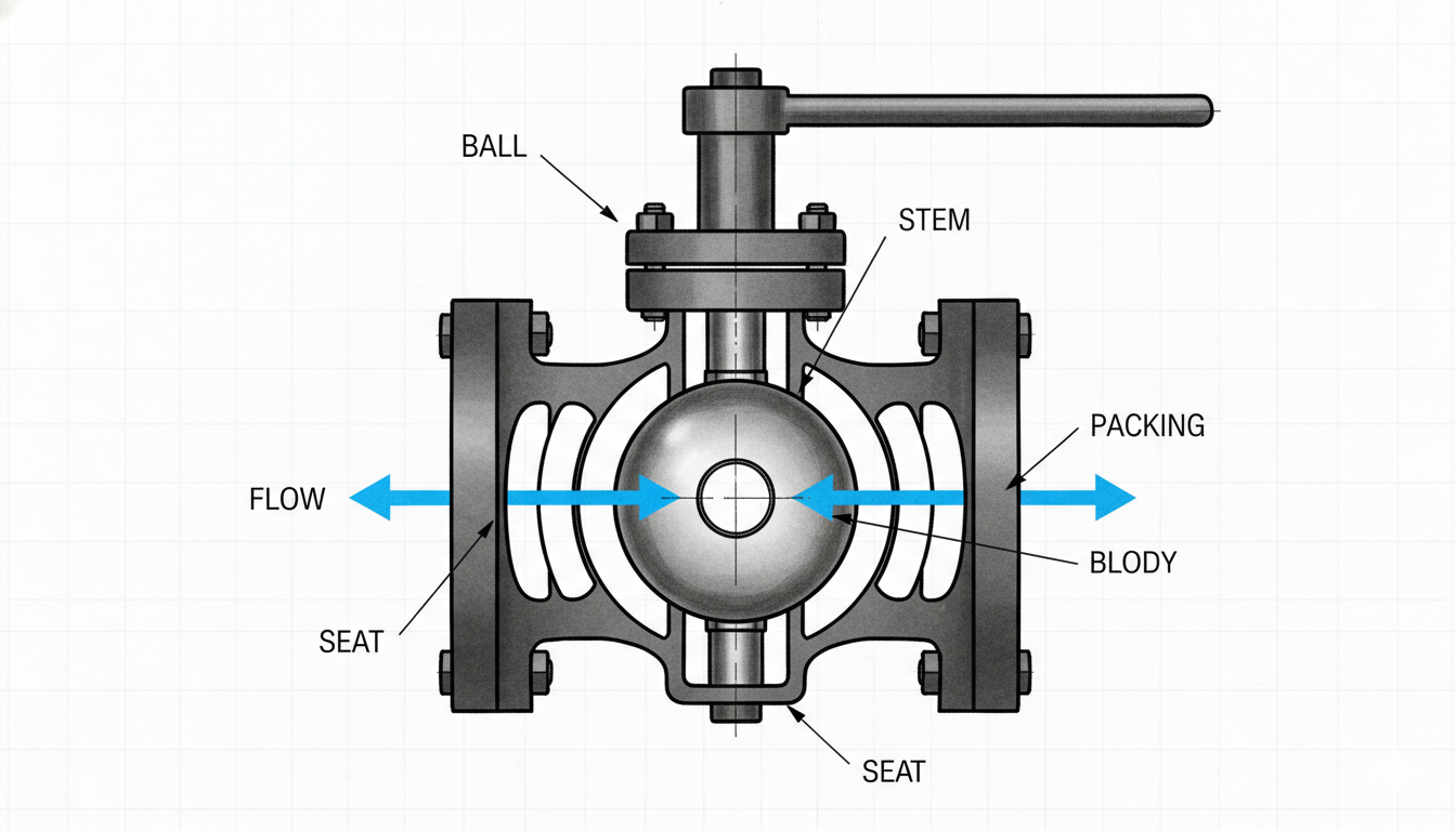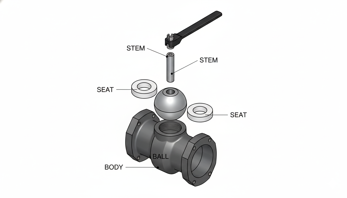 1. Prinsip Kerja dan Komponen Utama Ball Valve