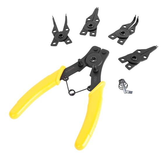 Deli Five-In-One Circlip Pliers EDL104506 adalah solusi praktis bagi Anda yang sering menangani berbagai jenis circlip atau snap ring. Dengan sistem kepala yang dapat diganti (interchangeable), Anda tidak perlu lagi membawa banyak tang berbeda.