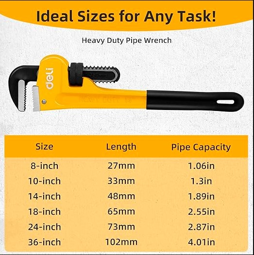 Kunci Pipa Deli EDL2536 adalah investasi terbaik untuk daya ungkit optimal dan pekerjaan pipa yang aman serta efisien.